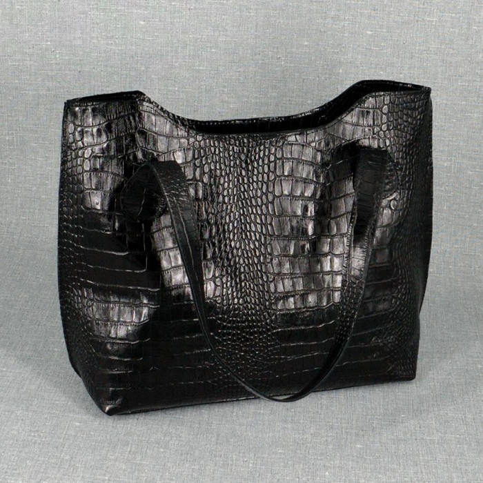Сумка шкіряна жіноча 010201 кайман чорна жіночної форми універсального стилю