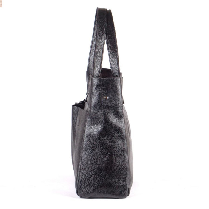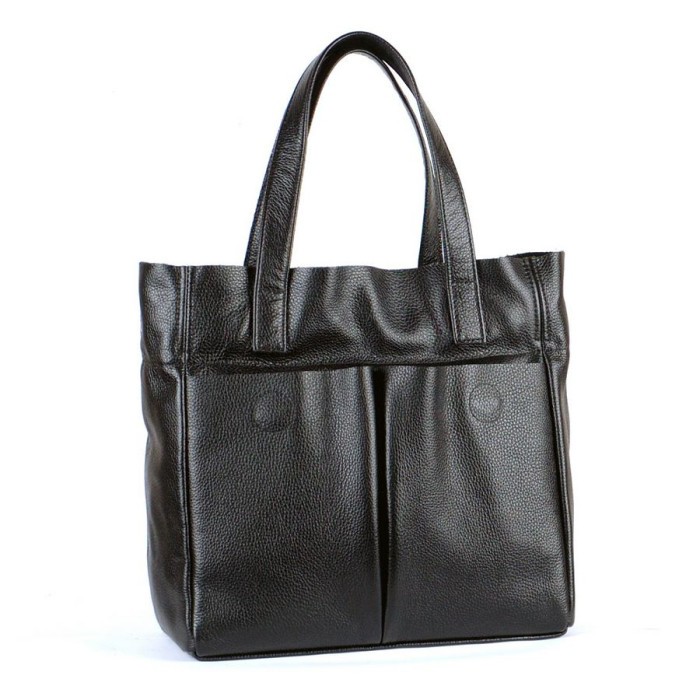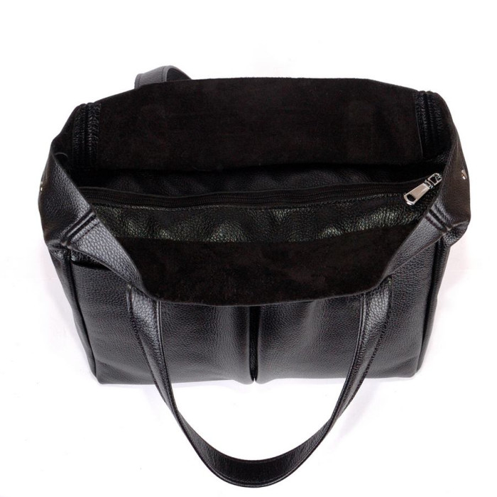 Сумка шкіряна жіноча 020101 чорна з кишенями на магнітах