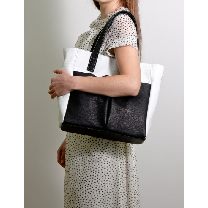 Сумка шкіряна жіноча 020115 чорно-біла з кишенями на магнітах
