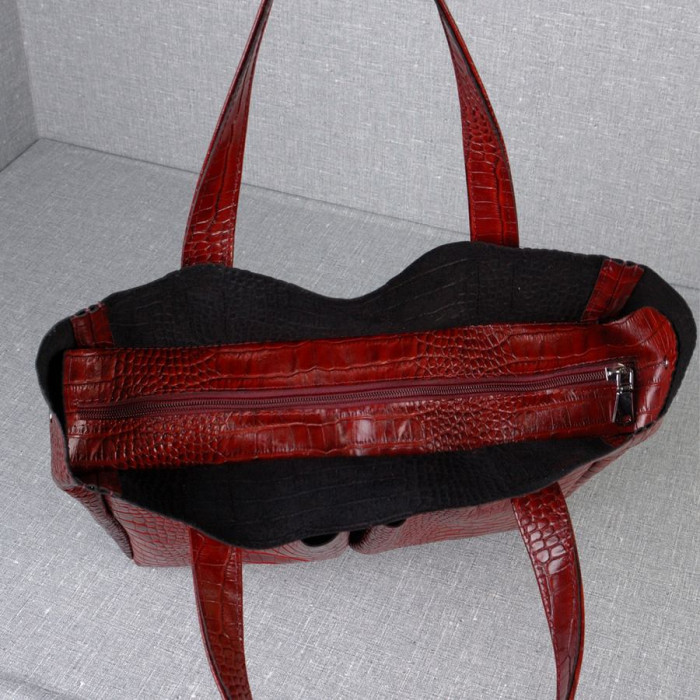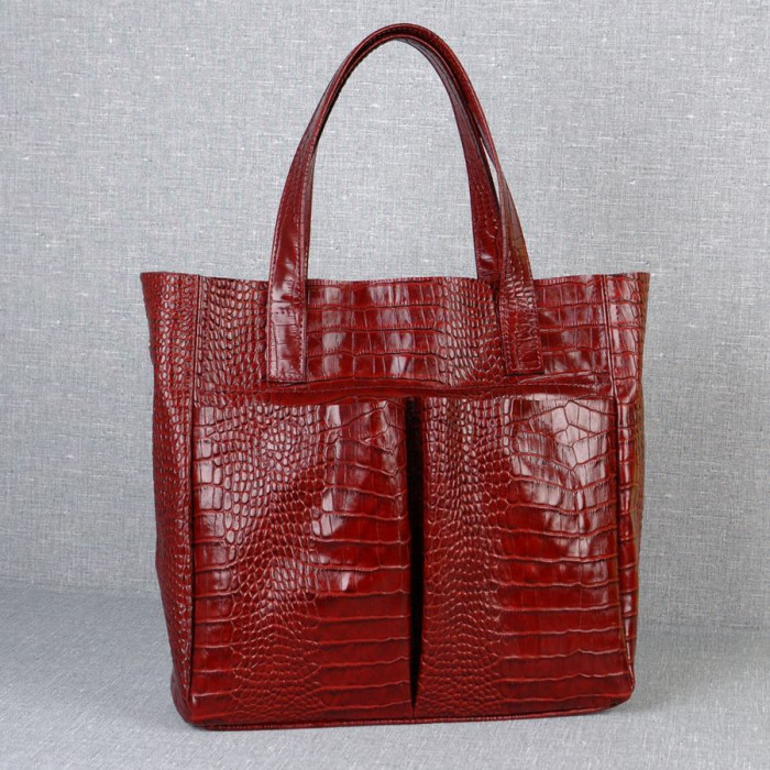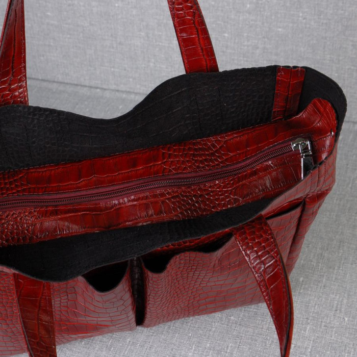 Сумка шкіряна жіноча 020203 кайман червона з кишенями на магнітах