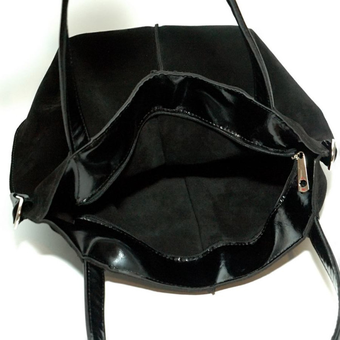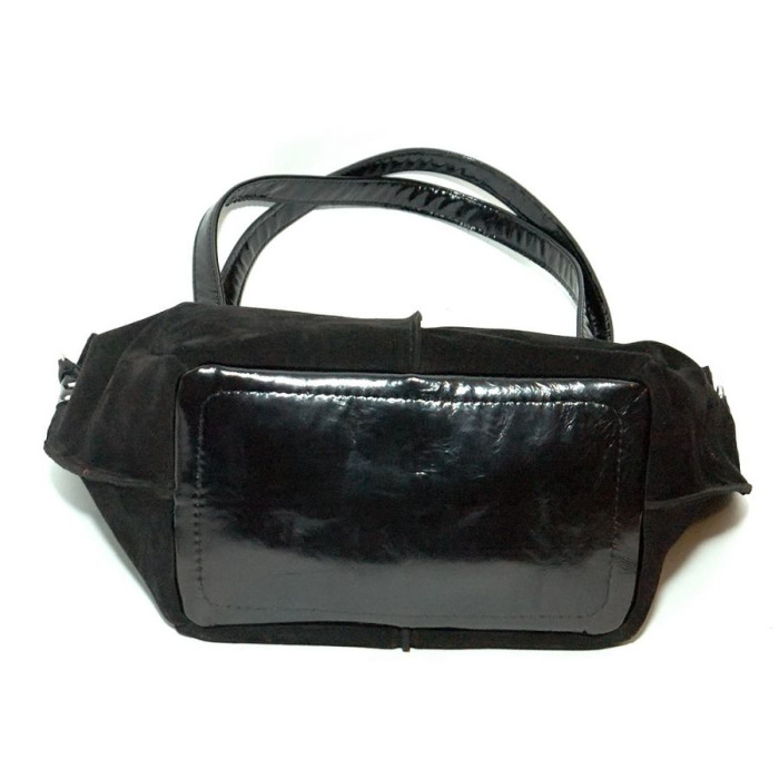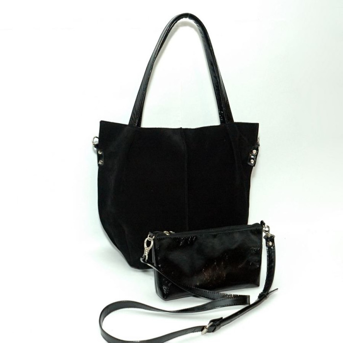 Сумка шкіряна жіноча 040501 замш чорна з додатковою сумкою вкладишем виготовлена з натуральної шкіри.