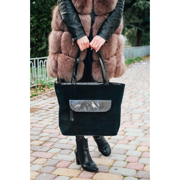 Сумка шкіряна жіноча 070601 чорна замша / наплак