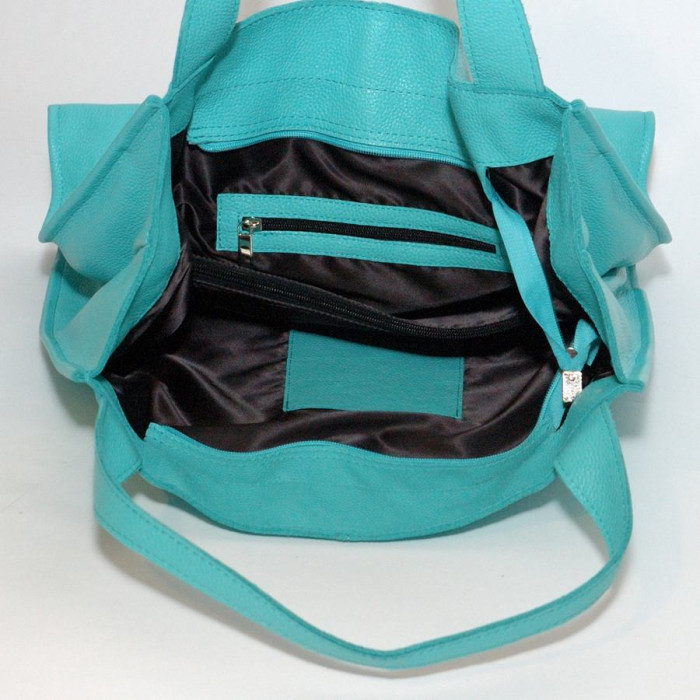 Сумка шкіряна жіноча 120119 Бірюзова у формі шоппера
