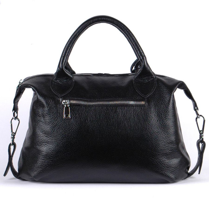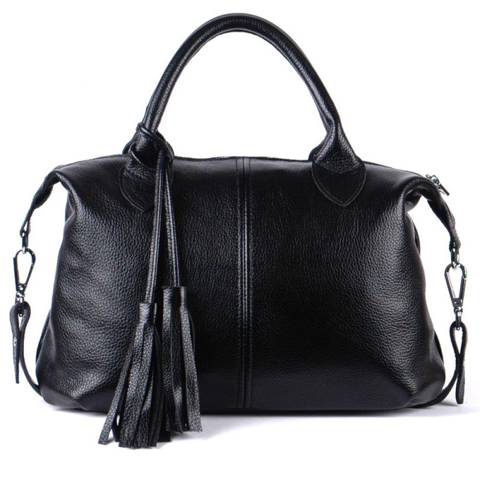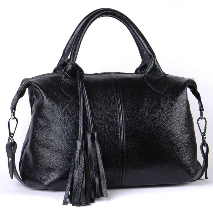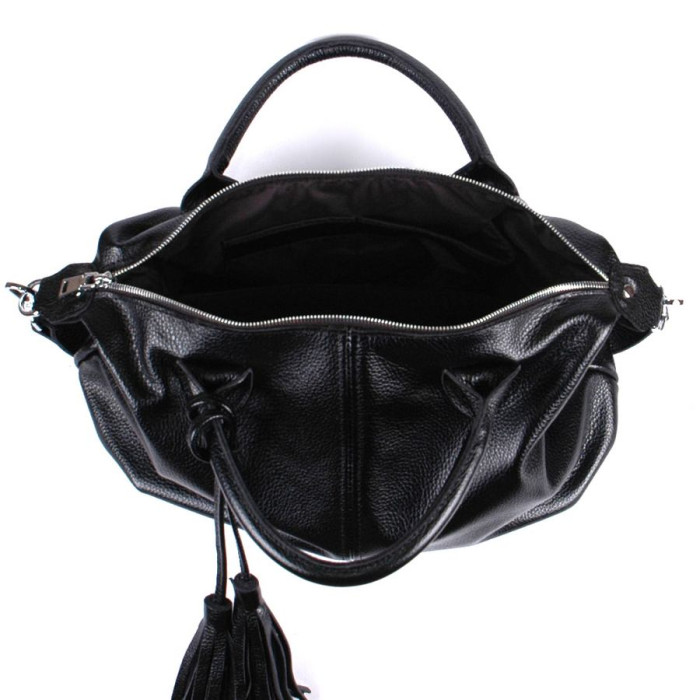 Сумка шкіряна жіноча 200101 чорна красивою і зручною форми, прикрашена пензликами