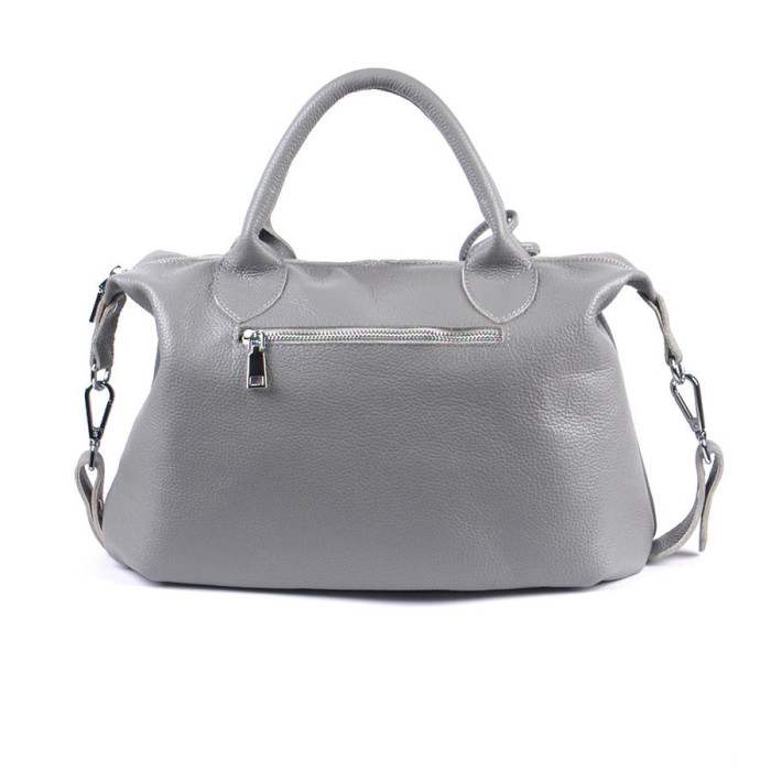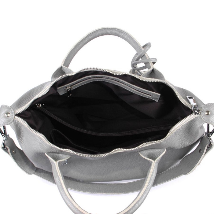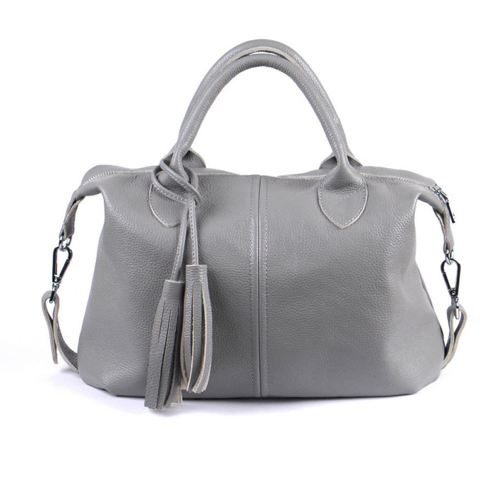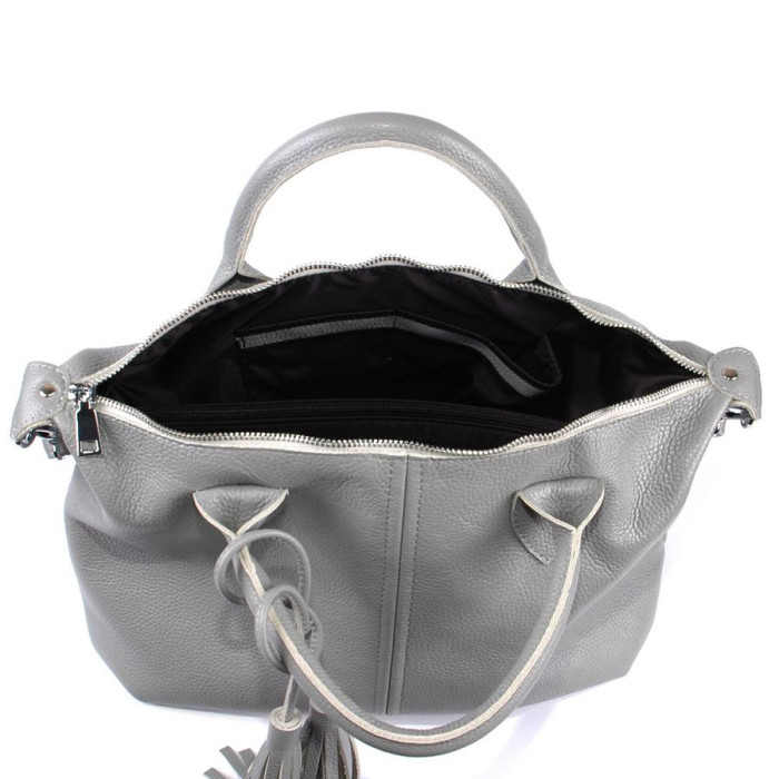 Сумка шкіряна жіноча 200114 сіра красивою і зручною форми, прикрашена пензликами