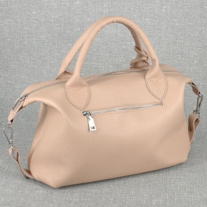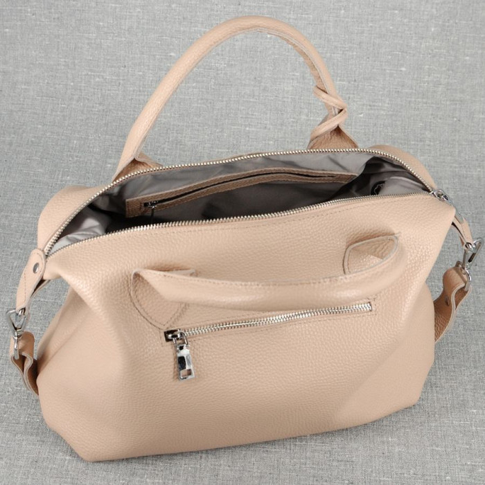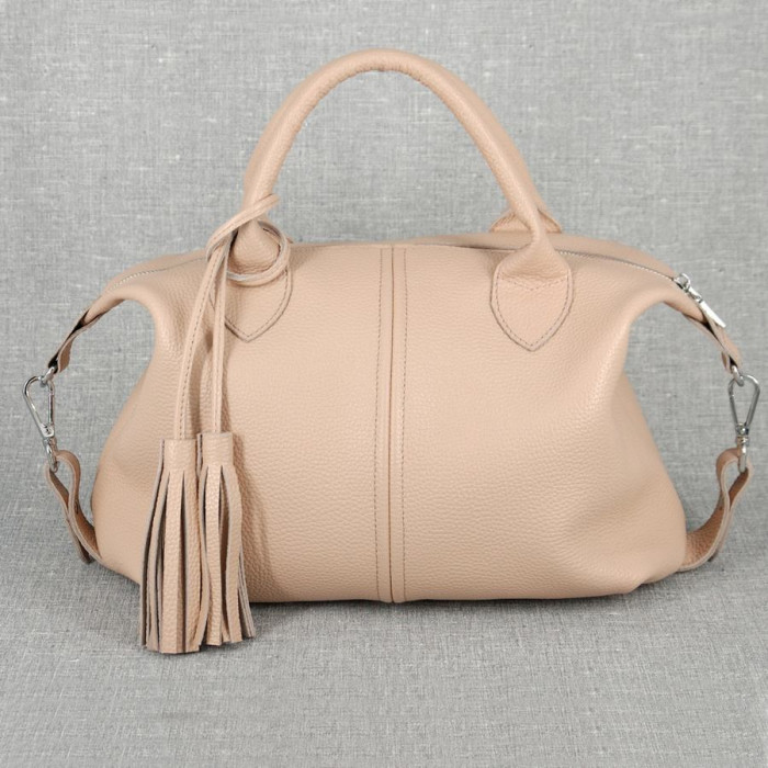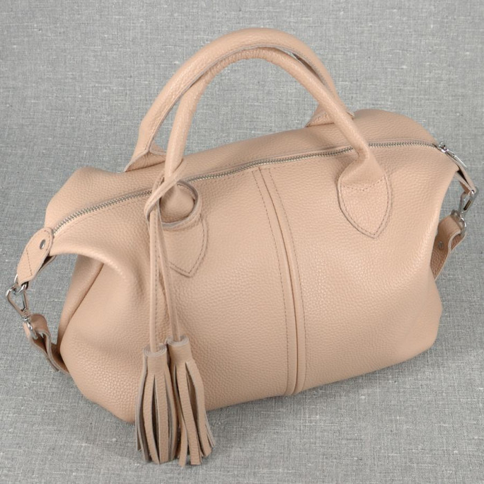 Сумка шкіряна жіноча 200117 нюд красивою і зручною форми, прикрашена пензликами