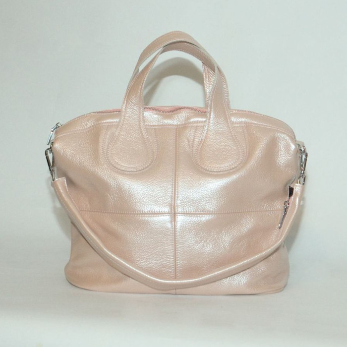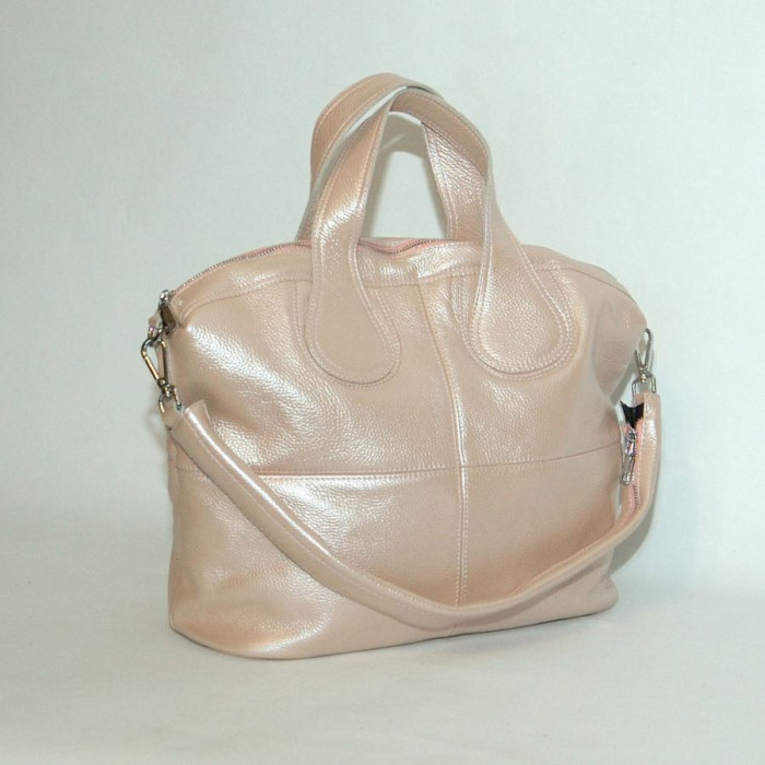Сумка шкіряна жіноча 220121 пудра з перламутром оригінального дизайну з натуральної шкіри