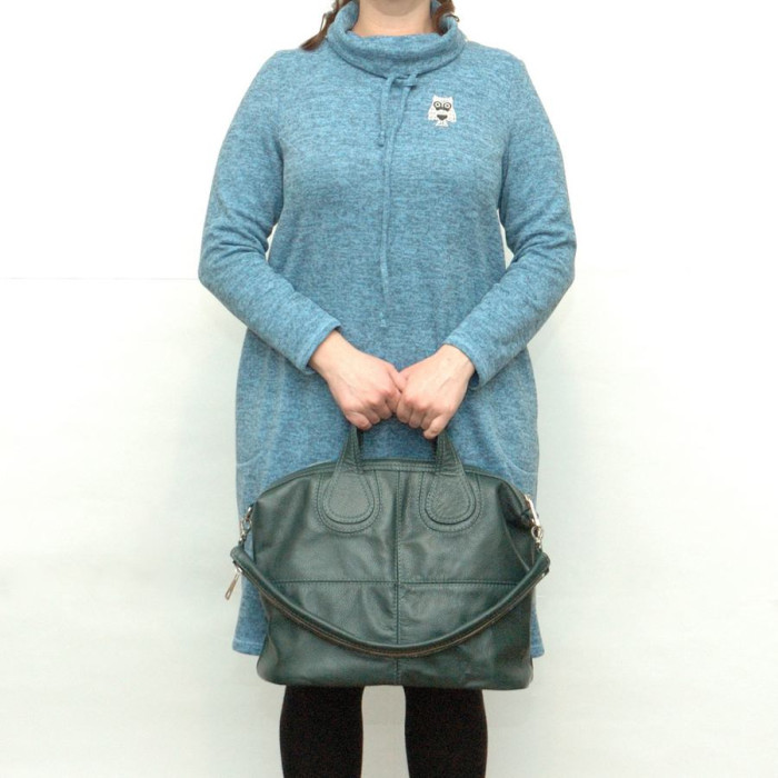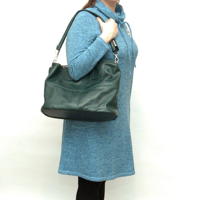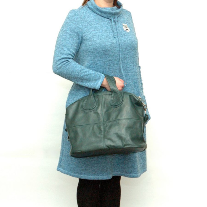 Сумка шкіряна жіноча 220122 Зелена оригінального дизайну з натуральної шкіри