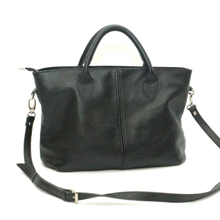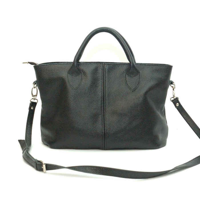 Сумка шкіряна жіноча 230101 чорна має довгий ремінь для носіння через плече