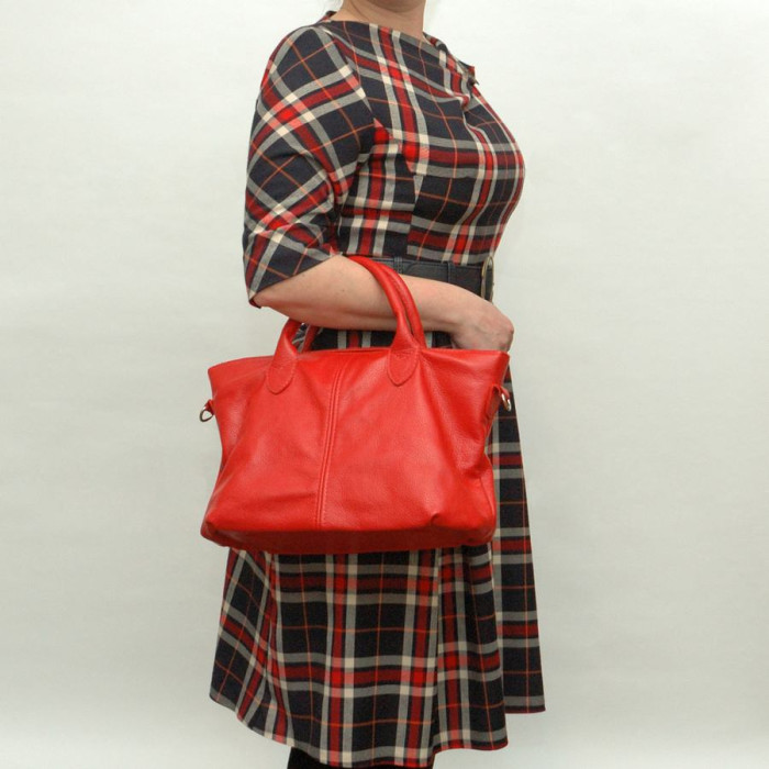 Сумка шкіряна жіноча 230103 червона має довгий ремінь для носіння через плече