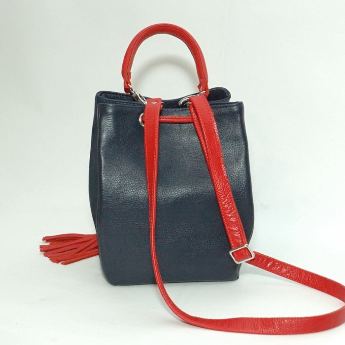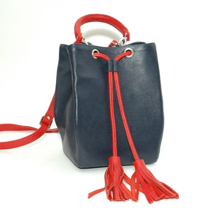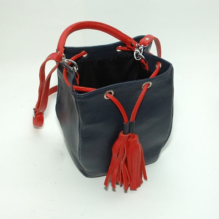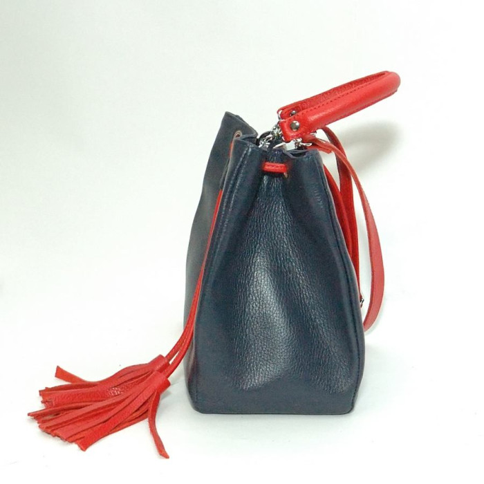 Сумка шкіряна жіноча 250143 синьо-червона з натуральної шкіри ідеально підійде як прогулянковий варіант