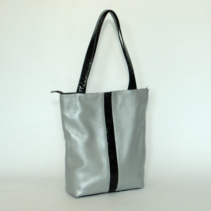 Сумка шкіряна жіноча 270107 срібло з натуральної шкіри, практична і зручна
