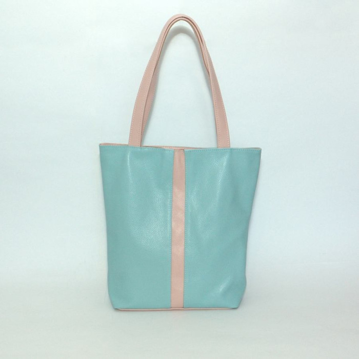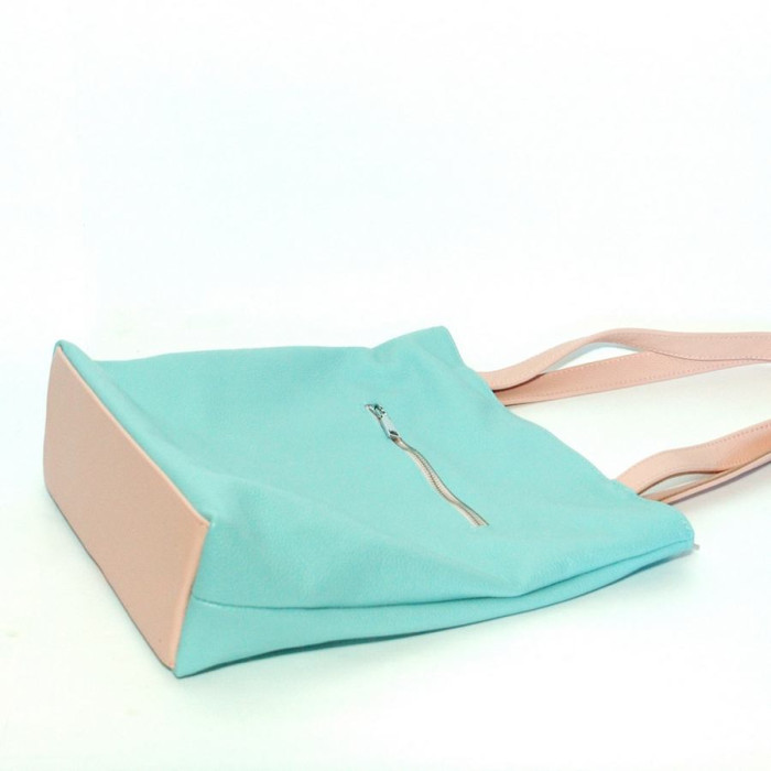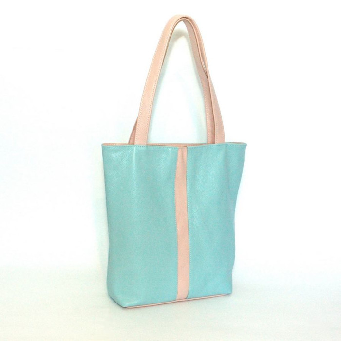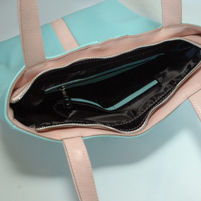 Сумка шкіряна жіноча 270147 блакитна з пудрою з натуральної шкіри, практична і зручна