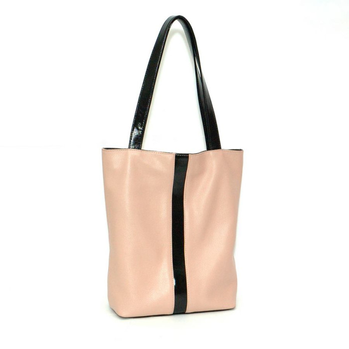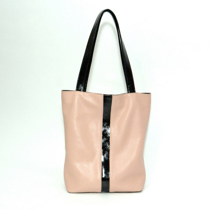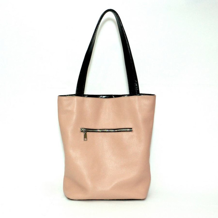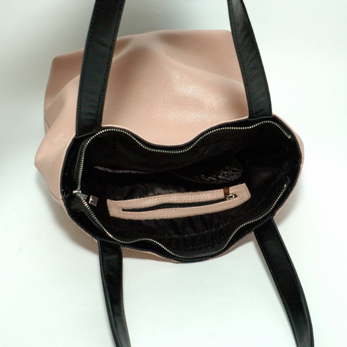 Сумка шкіряна жіноча 270161 пудра з чорним з натуральної шкіри, практична і зручна