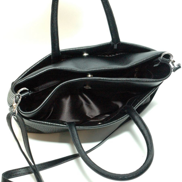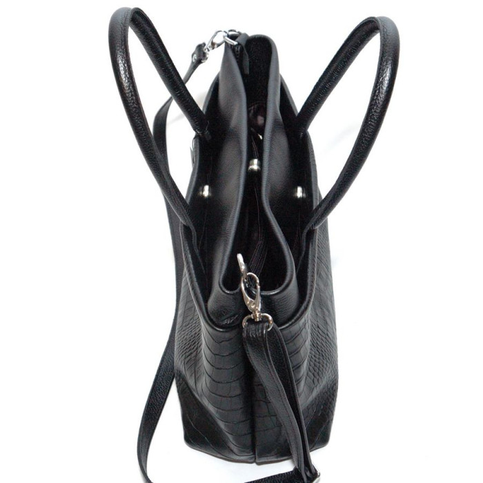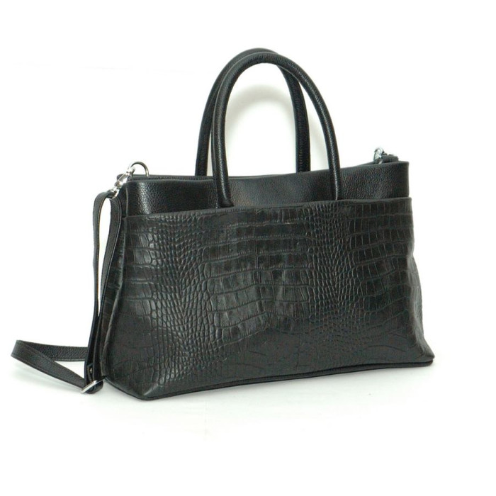 Сумка шкіряна жіноча 320201 кайман чорна з натуральної шкіри ділового стилю