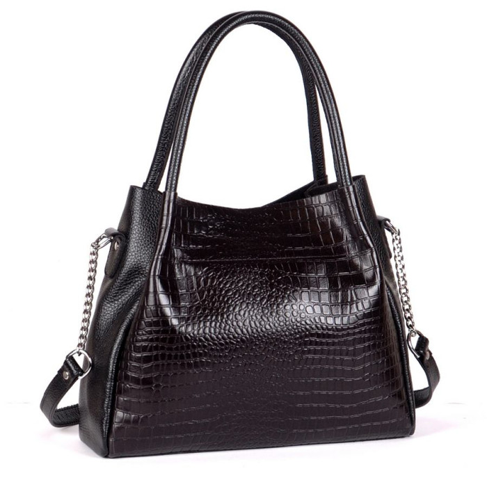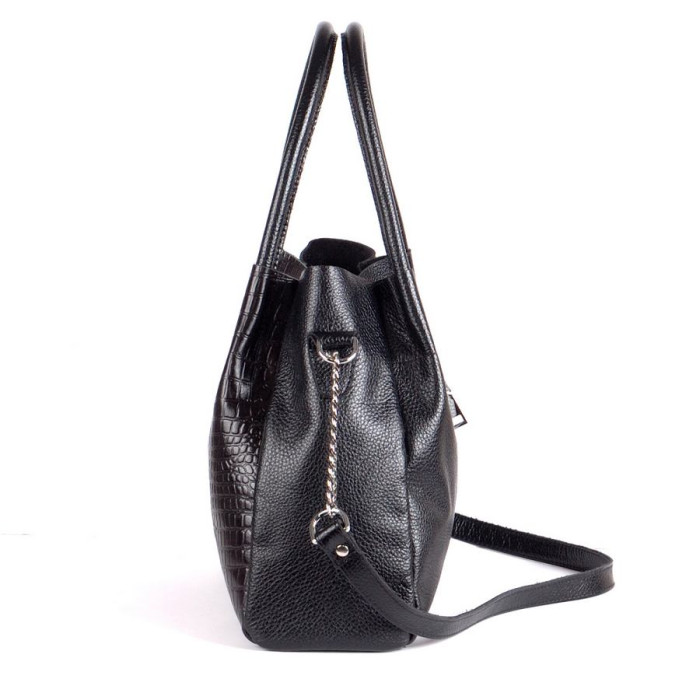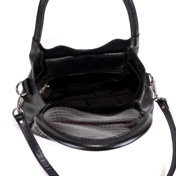 Сумка шкіряна жіноча 330201 кайман чорна цікавої форми з натуральної шкіри