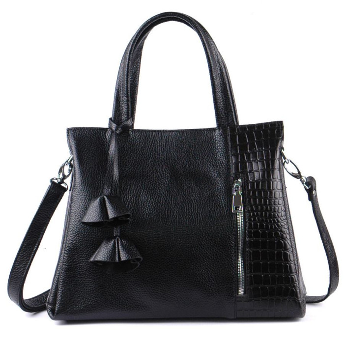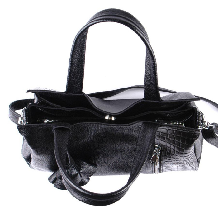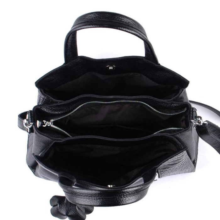 Сумка шкіряна жіноча 370201 чорна практична і містка