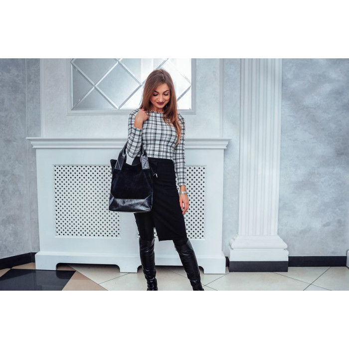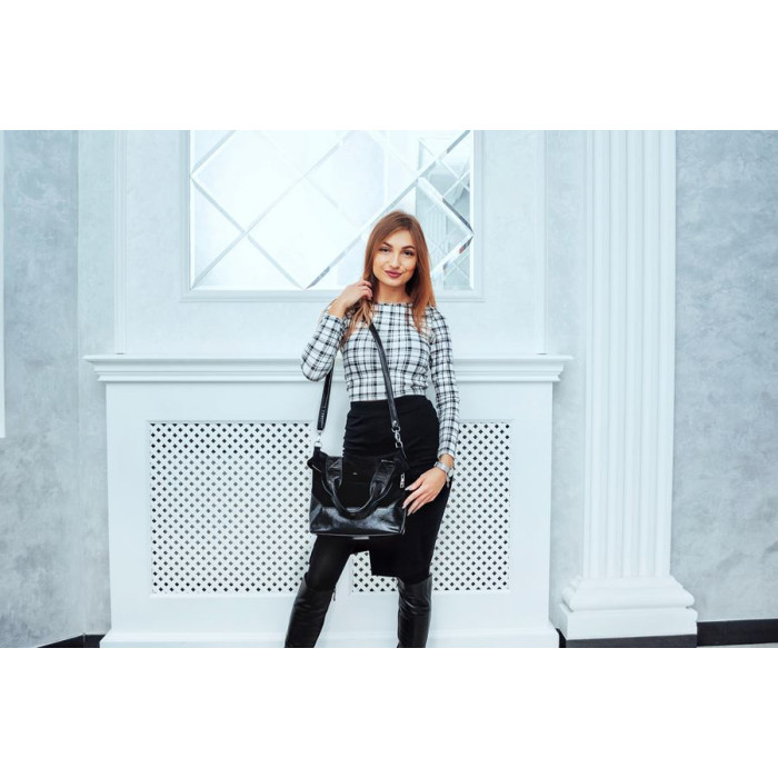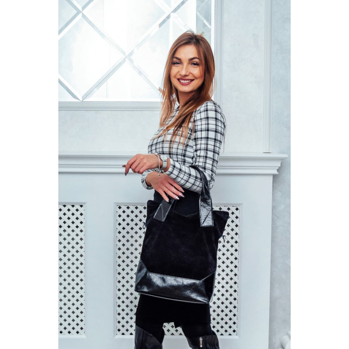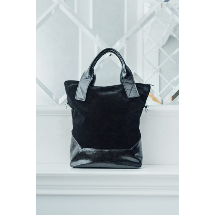 Сумка шкіряна жіноча 400601 чорна замша / наплак з плечовим ременем