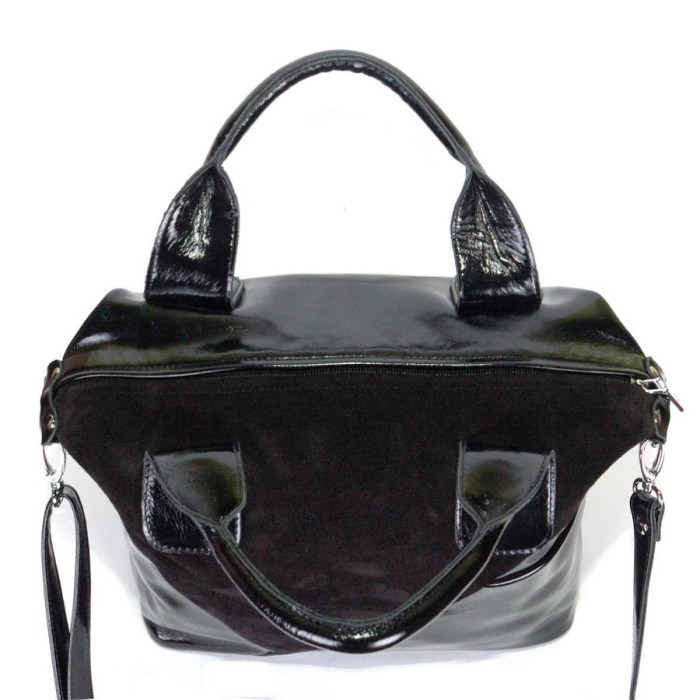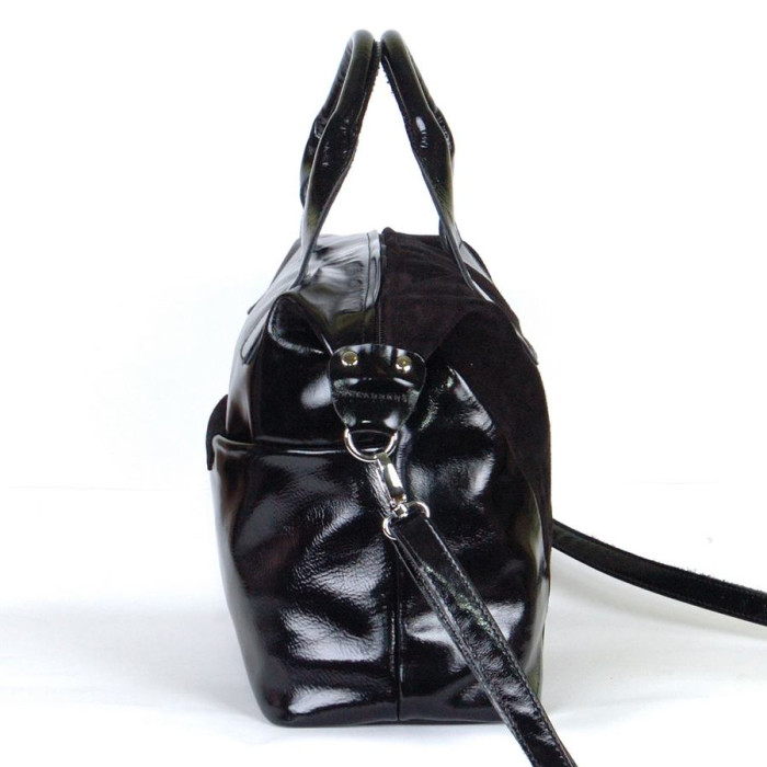 Сумка шкіряна жіноча 490401 лакована чорна дуже незвичайний і стильний дизайн