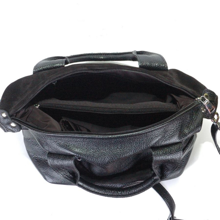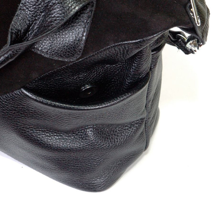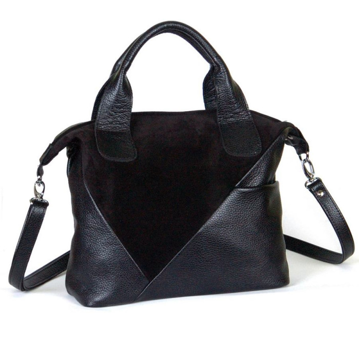 Сумка шкіряна жіноча 490601 з замшевою вставкою чорна дуже незвичайний і стильний дизайн