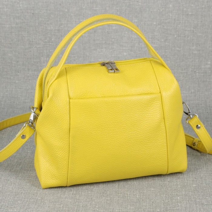 Сумка шкіряна жіноча 510112 жовта середнього розміру з якісної натуральної шкіри