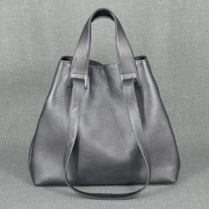 Сумка шкіряна жіноча 560115 нікель з подвійними ручками