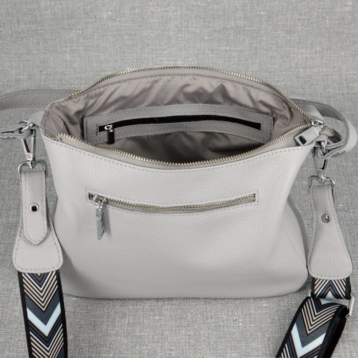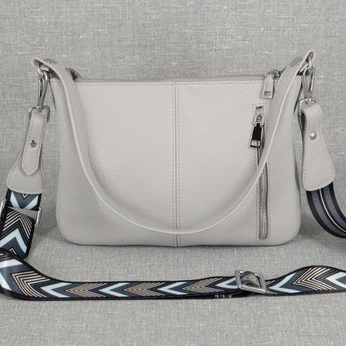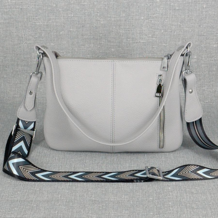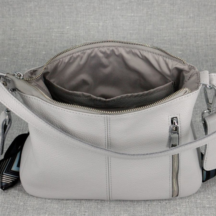 Сумка шкіряна жіноча 590114 сіра виготовлена з якісної натуральної шкіри з довгим ременем через плече.