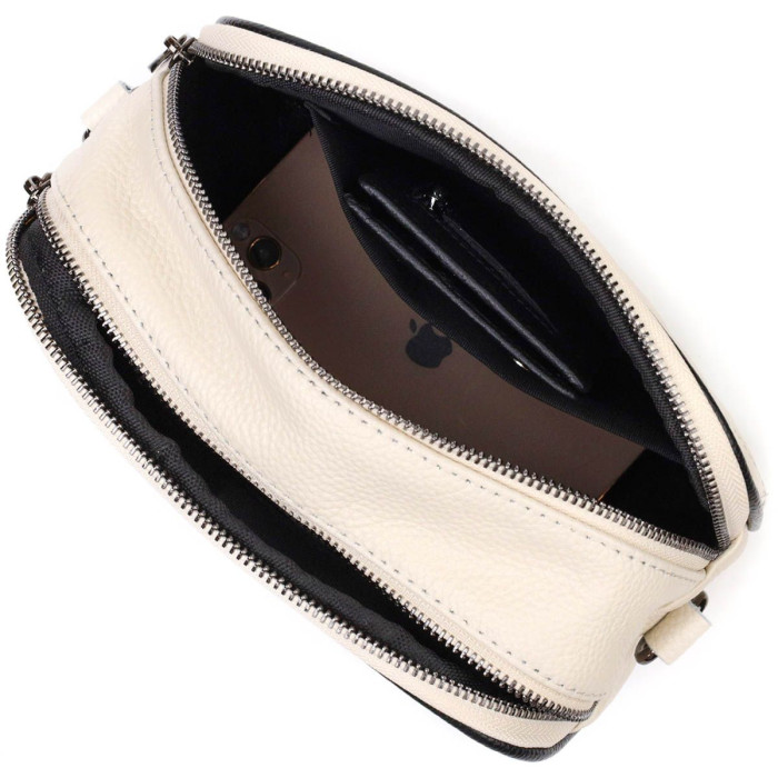 Жіноча сумка крос-боді з натуральної шкіри високої якості. Виріб дуже зручний, можна носити на плечі та через плече. Модель доповнена фурнітурою кольору темного срібла. Аксесуар має два основні відділення у яких дві кишеньки - одна на блискавці та одна відкритого типу, а також кишеня на блискавці зовні, на тильній стороні. Модель закривається на блискавку. Ідеальний варіант для будь-якої дівчини на будь-який сезон.