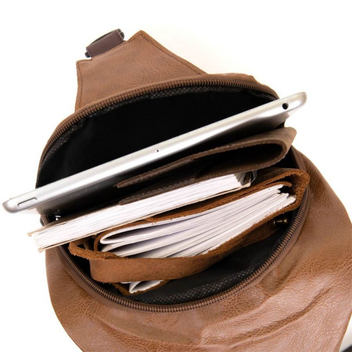 Ідеальна сумка для щоденного використання і поїздок. Сумка тонка і дуже ергономічна. Виріб виконаний зі шкірозамінника і продумано з урахуванням всіх тенденцій під практичного сучасного чоловіка. З такою моделлю всі ваші особисті речі будуть в безпеці і перед вашими очима. Дизайн сумки забезпечує вам легкий доступ до ваших особистих речей. Функціональність сумки на вищому рівні. Ми впевнені, що ви залишитеся задоволені даною моделлю. У сумці також є вхід USB і шнур для зарядки. Сумка доповнена текстильним ремінцем через плече. Сумка крос стане прекрасним подарунком для ваших близьких.