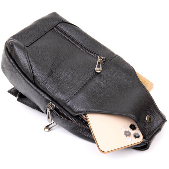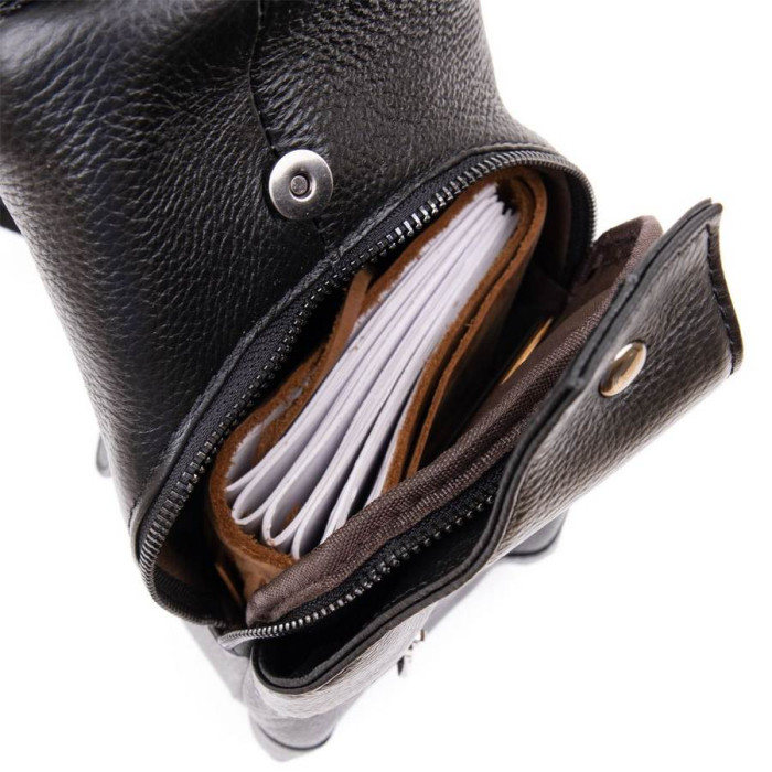 Дуже компактна чоловіча барсетка з натуральної шкіри насиченого чорного кольору. Аксесуар можна носити через плече. Незважаючи на свій маленький розмір барсетка досить функціональна. Сумка тримає форму. У виробі ви зможете носити ваші особисті речі (телефон, гаманець, документи). З такою сумочкою вони будуть в одному місці і в безпеці. Сумка стане прекрасним подарунком для ваших близьких.