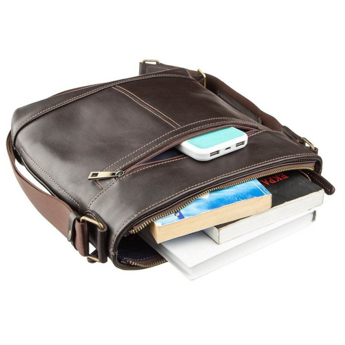 В сумці настільки багато кишень різноманітного типу, що можна загубитися. Аксесуар виконаний з натуральної гладкої шкіри, яка не вибаглива в догляді. Модель прошита по краях коричневої рівною ниткою і доповнена якісною фурнітурою. Зручна модель для роботи і зустрічей. В сумку легко поміститься планшет, блокнот, портмоне або клатч, документи та інші необхідні речі на кожен день. У комплекті до моделі йде тканинний помаранчевий чохол, що робить її прекрасним варіантом для подарунка.