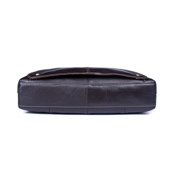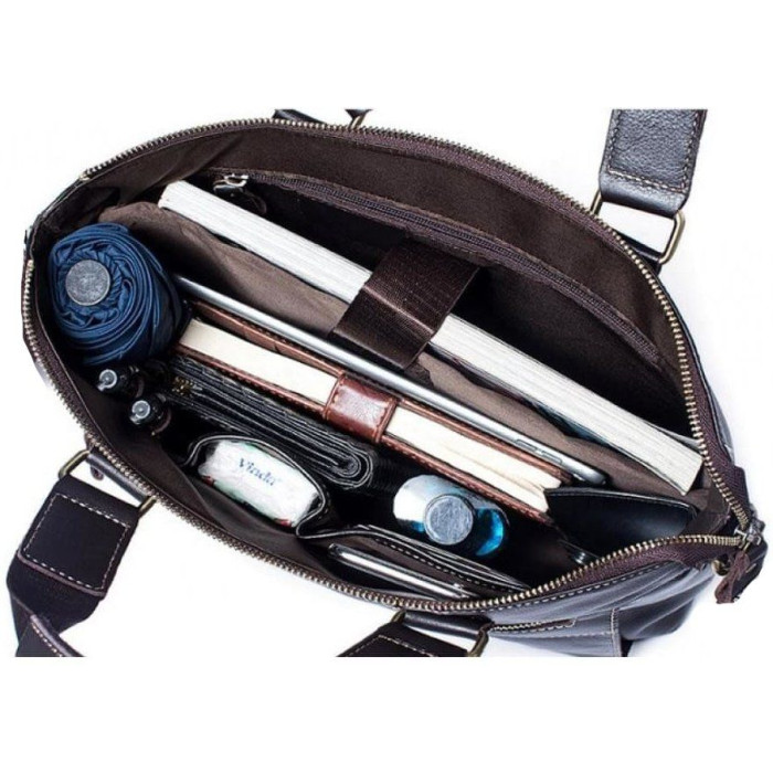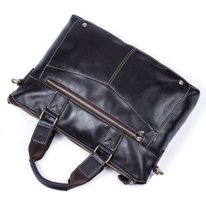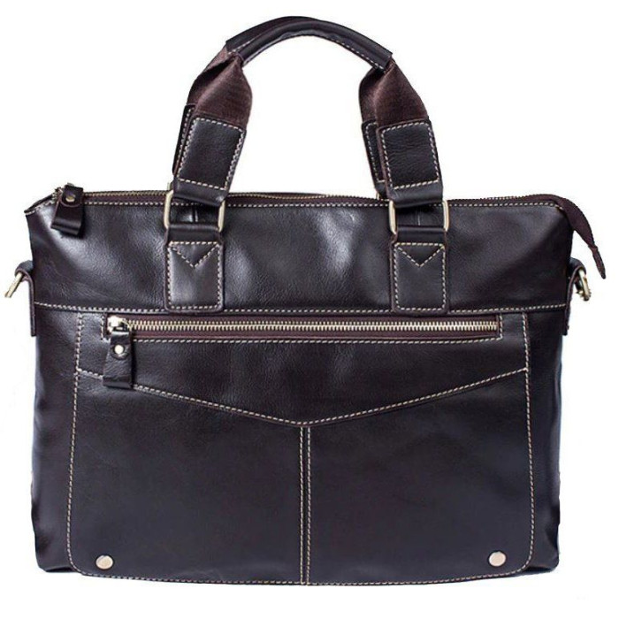 Стильна чоловіча сумка для роботи, ноутбука або документів з натуральної шкіри. Виглядає дуже стильно і компактно. Сумку можна носити як в руках, так і на плечі. Хороший вибір для чоловіків, які цінують якість. Сумка дуже функціональна. Фурнітура в сумці виконана з міцного металу золотистого кольору. Модель прошита світлою бежевою ниткою. Шви рівні. Сумка зроблена добротно. Аксесуар йде в чохлі з тканини, що захищає його від пилу. Може бути прекрасним подарунком для близької людини.