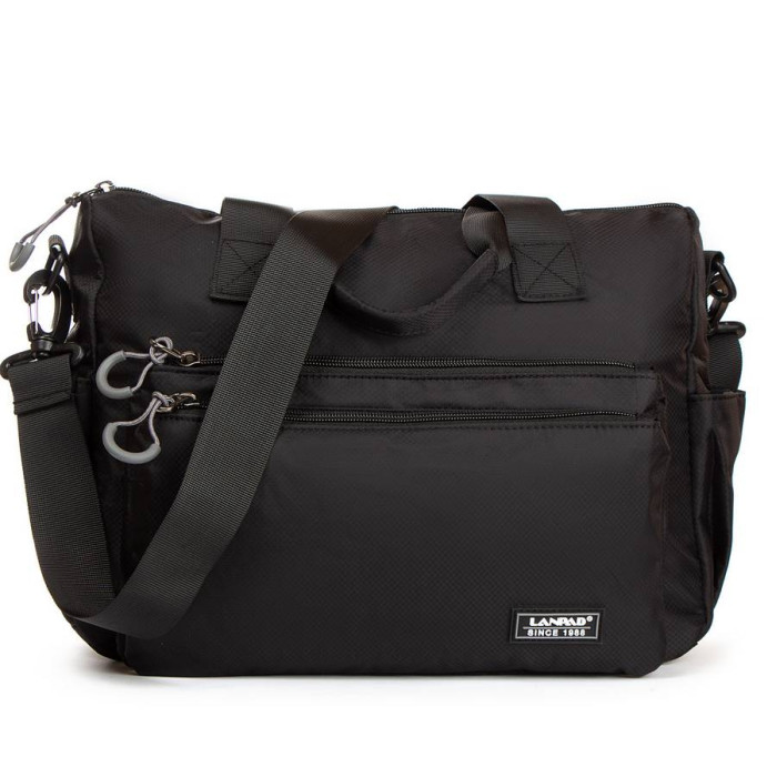 Чоловіча дорожня/спортивна сумка Lanpad. Одне відділення закривається на блискавку. Усередині відділення є кишеня на блискавці та відкрита кишеня. На фасаді знаходиться дві місткі кишені на блискавці, а на звороті розташована одна велика кишеня на блискавці. На торцях сумки розташовані відкриті кишені. Регульований плечовий ремінь шириною 4см.