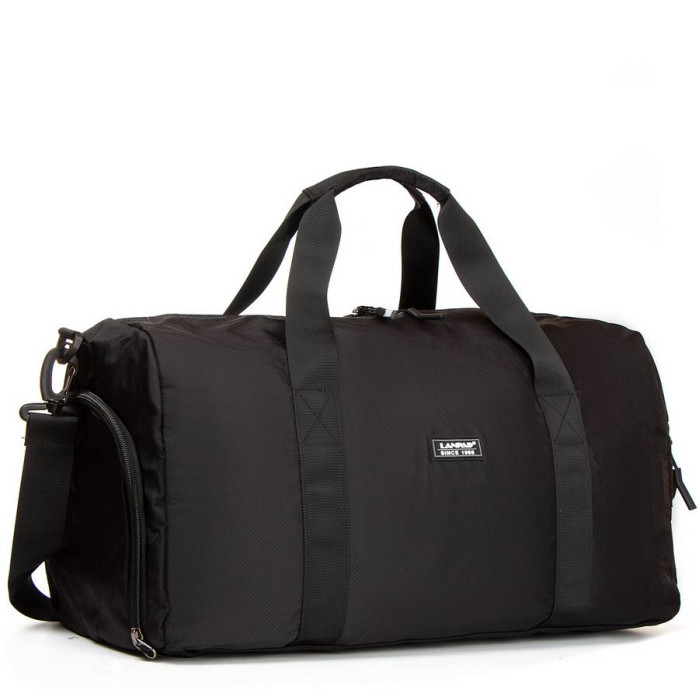 Чоловіча дорожня/спортивна сумка Lanpad. Одне відділення закривається на блискавку. Усередині відділення є кишеня на блискавці та подвійна відкрита кишеня. На звороті розташована велика кишеня на блискавці з герметичною підкладкою та кишеня меншого розміру. На торцях сумки розташовані кишеня для взуття та кишеня на блискавці. Регульований плечовий ремінь шириною 4см.
