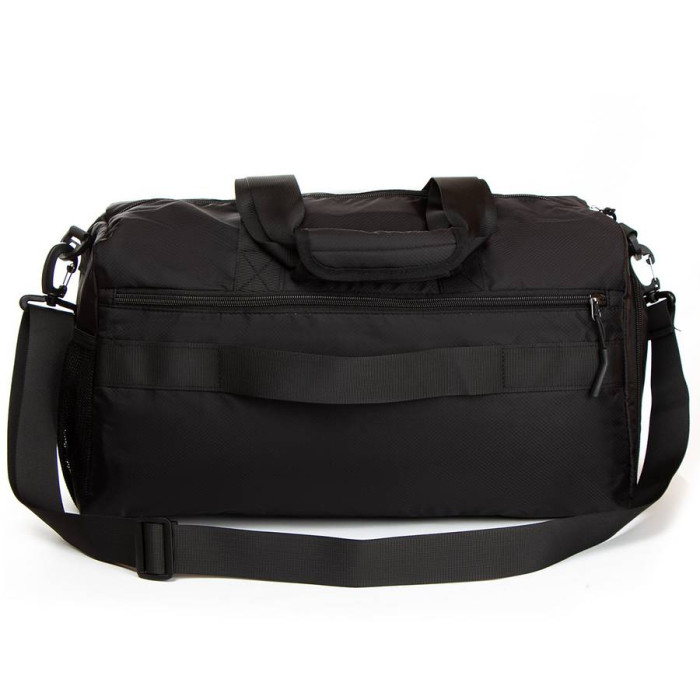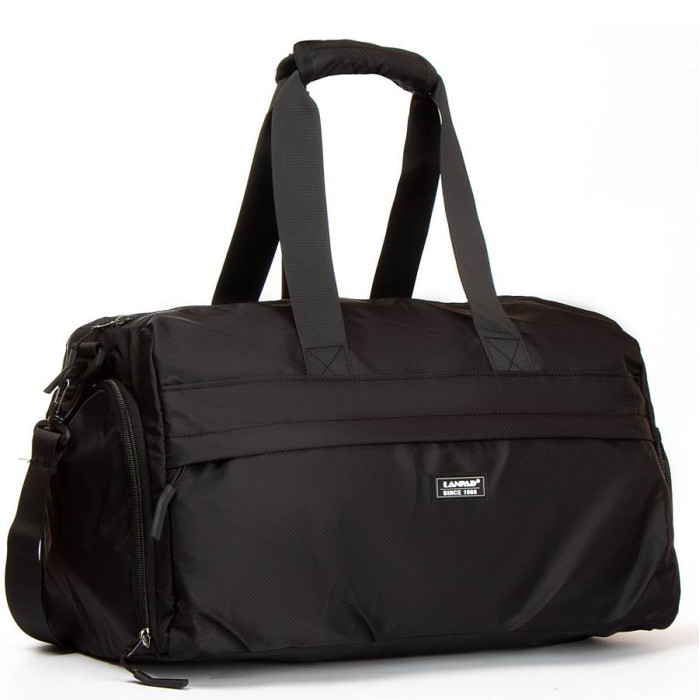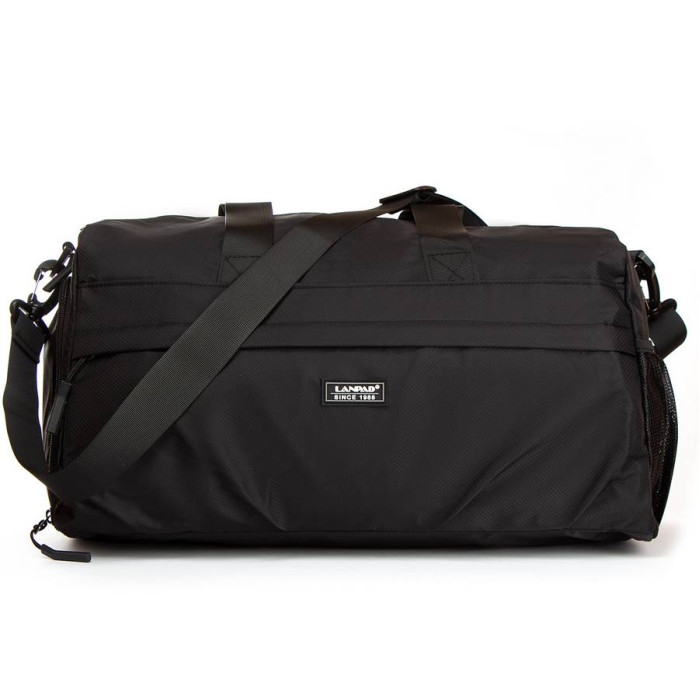 Чоловіча дорожня/спортивна сумка Lanpad. Одне відділення закривається на блискавку. Усередині відділення є кишеня на блискавці та подвійна відкрита кишеня. На фасаді знаходиться кишеня на блискавці. На звороті розташована велика кишеня на блискавці з герметичною підкладкою. На торцях сумки розташовані кишеня для взуття та відкрита кишеня. Регульований плечовий ремінь шириною 4см.