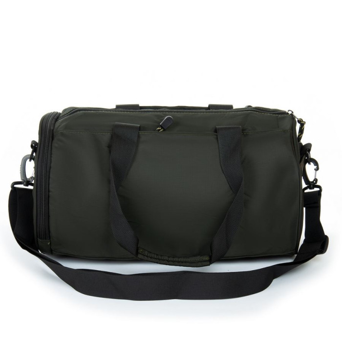 Чоловіча дорожня/спортивна сумка Lanpad. Одне відділення закривається на блискавку. Усередині відділення є кишеня на блискавці та відкрита кишеня. На фасаді знаходиться дві місткі кишені на блискавці, а на звороті розташована одна велика кишеня на блискавці. На торцях сумки розташовані відкриті кишені, кишеня для взуття. Регульований плечовий ремінь шириною 4см.