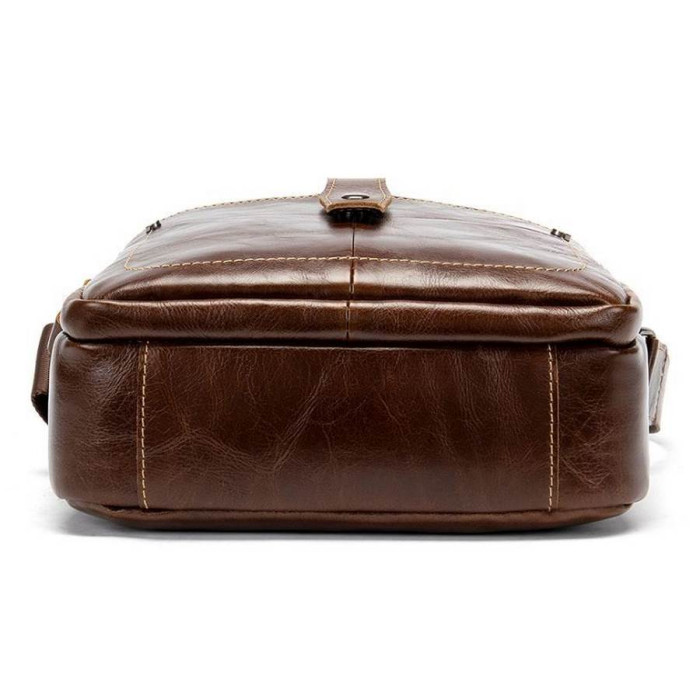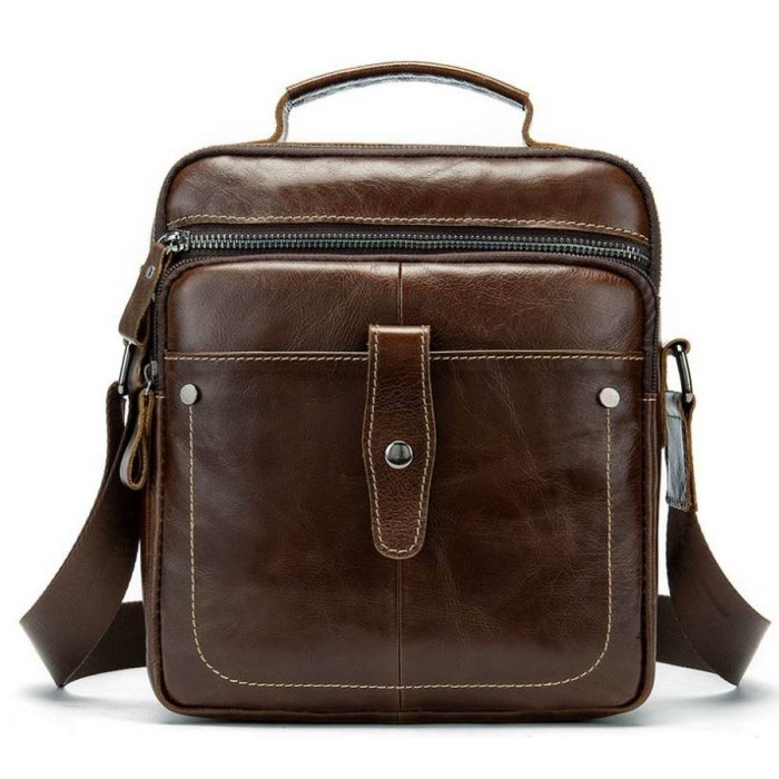 Стильна і комфортна чоловіча сумка для сучасних чоловіків, які люблять виглядати на всі 100. Шкіра такого плану дуже добре носиться і блищить на сонці. По краях аксесуар прошитий світлою ниткою. Всередині підкладка коричневого кольору. Така сумка прослужить вам дуже довго. Відмінний варіант для подарунка близькій людині. Сумка упакована в тканинний мішок від пилу і зносу.