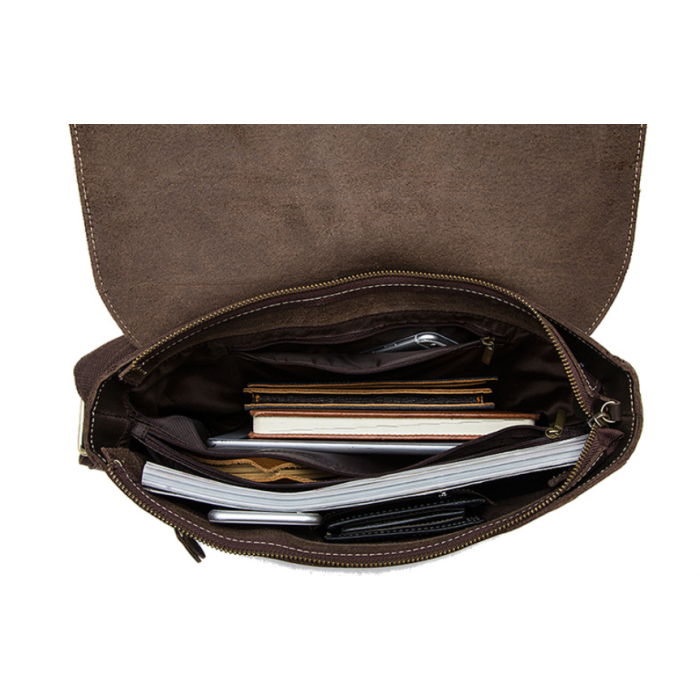 Вінтажна ділова сумка горизонтального типу з натуральної шкіри високої якості. Особливістю шкіри Crazy horse є поява подряпин і потертостей в процесі експлуатації аксесуара. Модель дуже солідно виглядає. Аксесуар підійде під ваш діловий стиль. Прекрасний варіант для роботи або навчання. По краях сумка прошита світлим рядком. У комплекті йде пилозахисний чохол.