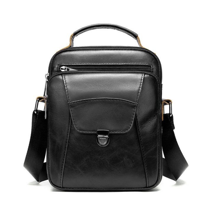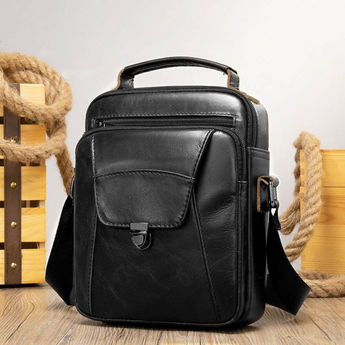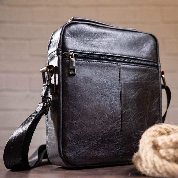 Компактна чоловіча сумка з натуральної шкіри класичного чорного кольору. Всередині - щільна текстильна підкладка. Сумка стане ідеальним помічником чоловікові на кожен день. Виріб створено для чоловіків, які цінують якість і компактний розмір. З нею буде також дуже зручно ходити на роботу або зустрічі. Виріб стане чудовим подарунком для будь-якого чоловіка.