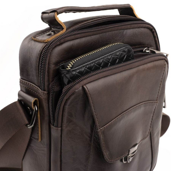 Якісна чоловіча сумка з натуральної шкіри компактного розміру. Виріб ідеально підійде на кожен день. У модель легко помістяться всі необхідні речі. Сумка підкреслить ваше відмінне почуття стилю. Виріб буде ідеальним подарунком для будь-якого чоловіка.