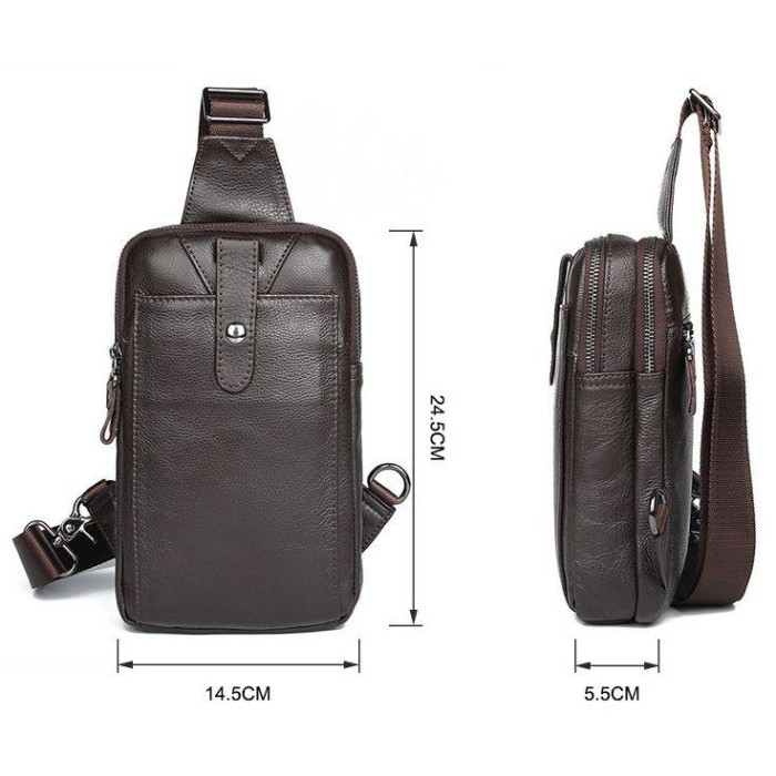 Компактна шкіряна чоловіча сумка з натуральної шкіри через плече. Невеликий розмір і легка вага сумки підкуповують клієнтів. Модель виконана в шкірі флотар, яка зовсім не вибаглива в догляді. По краях аксесуар прошитий рівною ниткою. Сумка стане прекрасним подарунком для будь-якого чоловіка.
