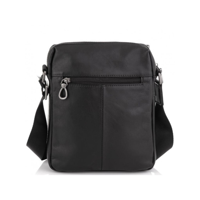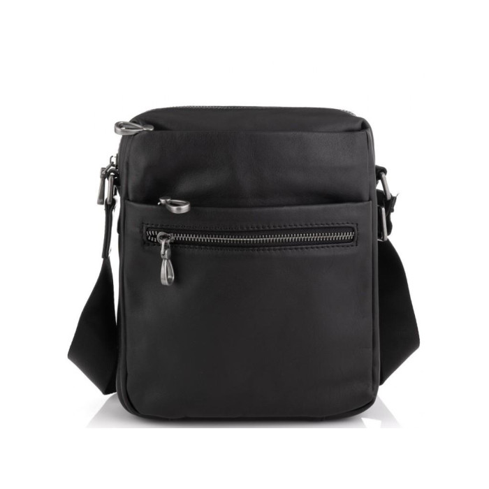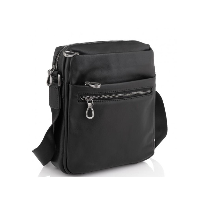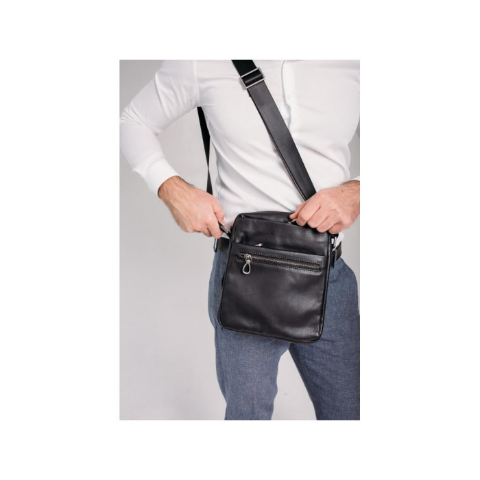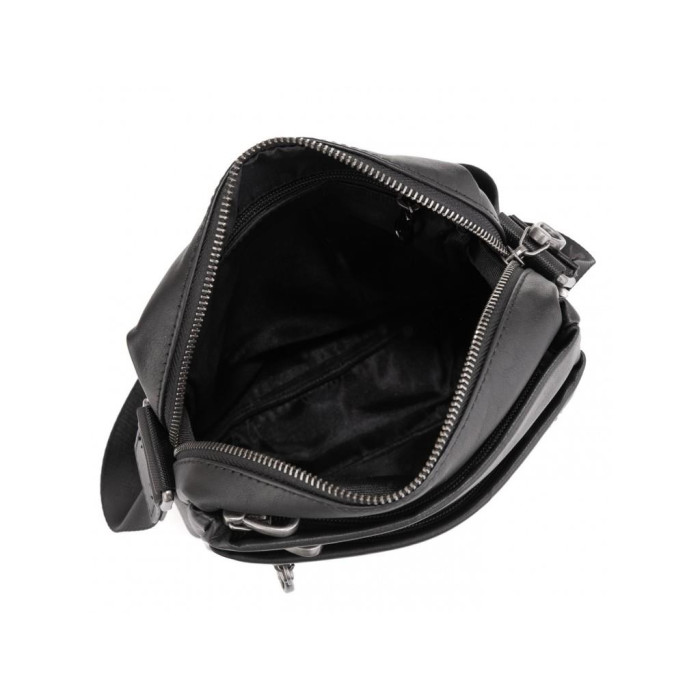 Чоловічий месенджер чорного кольору. Усередині сумки щільна, текстильна підкладка, текстильний месенджер, який регулюється по довжині. Чоловіча сумка має одне основне відділення. З лицьового боку розташовані додаткові три відділення на блискавці горизонтального типу, з тильного боку також є відділення на блискавці. Усередині основного відділення кишеня на блискавці і кишеня відкритого типу.