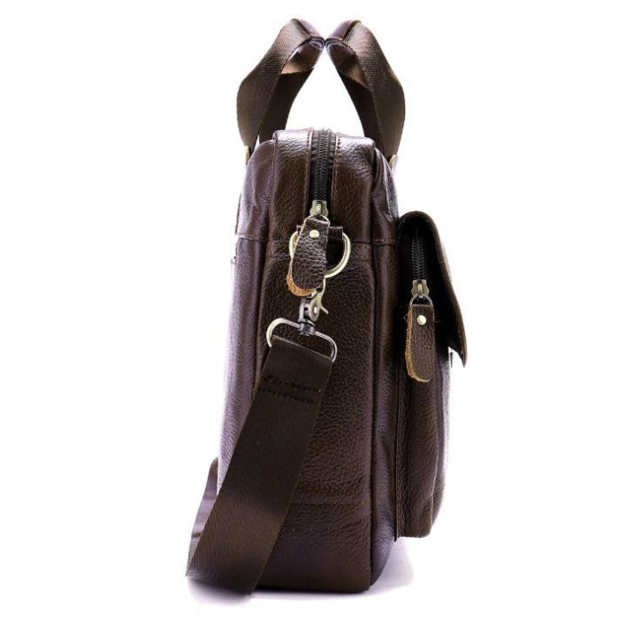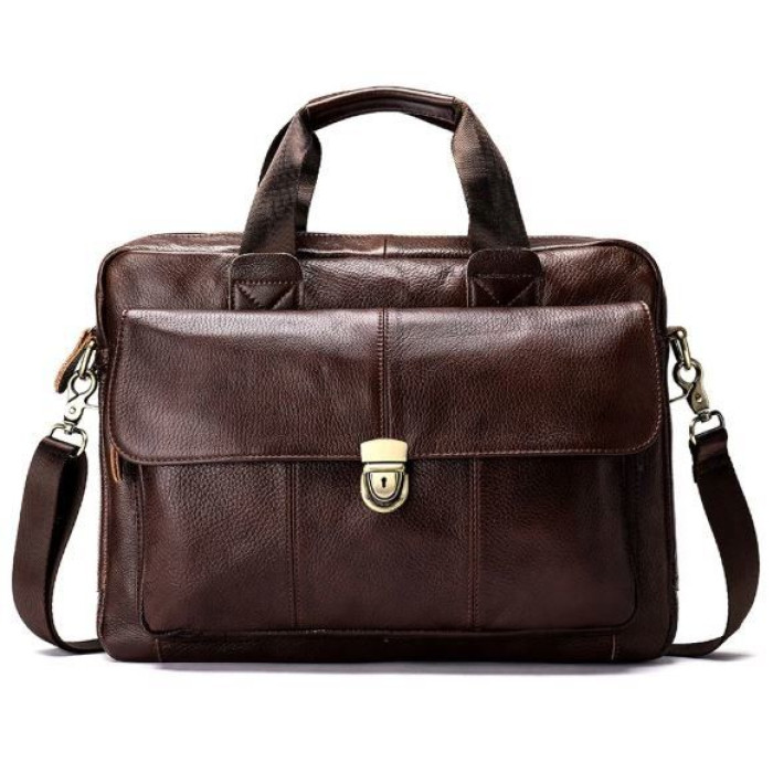 Аксесуар доповнено текстильним ремінцем, що знімається, для носіння на плечі і ручками для носіння в руках. Сумка має оригінальний і стильний дизайн, розроблений спеціально для ділових чоловіків. Щоб ваші речі були в безпеці сумка доповнена замком, який закривається на ключ. Аксесуар буде ідеальним варіантом на роботу або навчання. Сумка доповнена золотистою фурнітурою і прошита коричневою ниткою. Буде чудовим подарунком для близької людини.