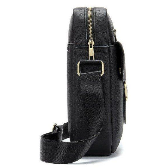 Стильна і одночасно компактна чоловіча сумка з натуральної шкіри. По краях аксесуар прошитий темною ниткою. Всі шви рівні, що стирчать ниток немає. Усередині аксесуару щільна текстильна підкладка коричневого кольору. Сумка буде вашим ідеальним варіантом на кожен день. Модель дуже зручна. Класичний дизайн ніколи не вийде з моди. Така сумка підійде під будь-які речі з вашого гардеробу. Доповнена красивою золотистою застібкою на лицьовій стороні.