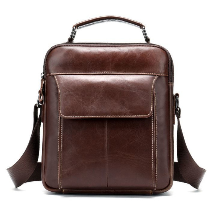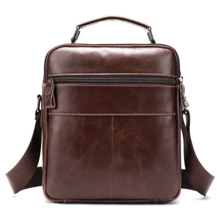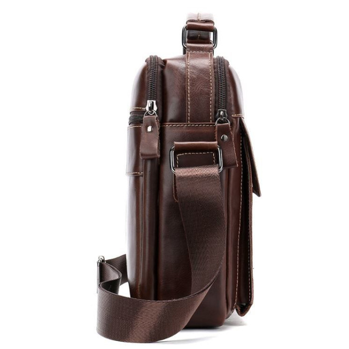 З такою сумкою на кожен день вам буде дуже зручно. Аксесуар виготовлений з натуральної шкіри хорошої якості. По краях прошитий світлою ниткою. Сумка має відмінний функціонал ідеальний для будь-якого чоловіка. В сумку поміститься невелика пляшка води, щоденник і планшет. Аксесуар буде відмінним подарунком для близької людини.