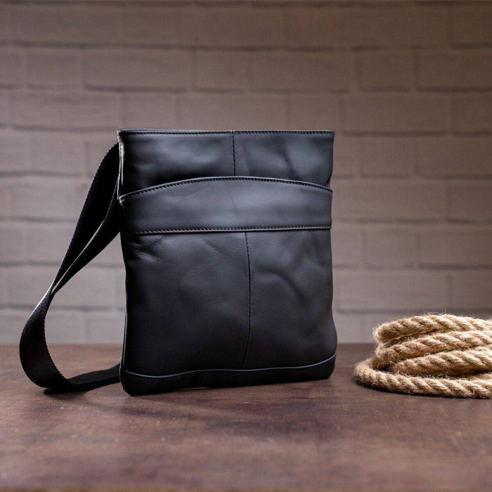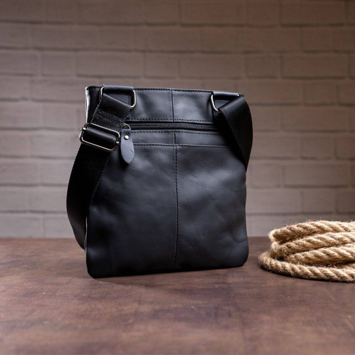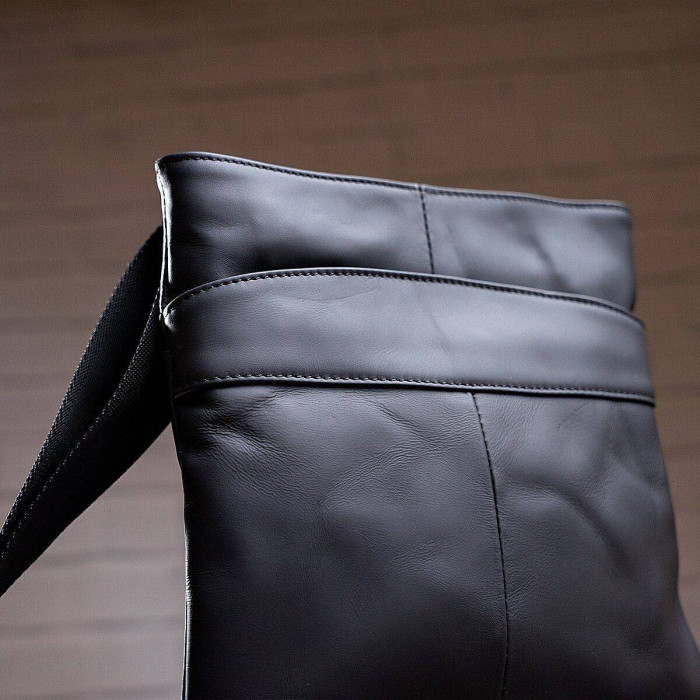 Компактна чоловіча сумка з натуральної шкіри. По краях аксесуар прошитий чорною ниткою. Всі шви рівні. Усередині аксесуару міцна текстильна підкладка коричневого кольору. Аксесуар доповнено текстильним регульованим ремінцем, що знімається. Дуже сучасна і продумана модель. Виробництво - фабричний Китай хорошої якості. Підійде для щоденного використання. Хороший варіант на роботу або в поїздку. Буде чудовим подарунком з будь-якого приводу.