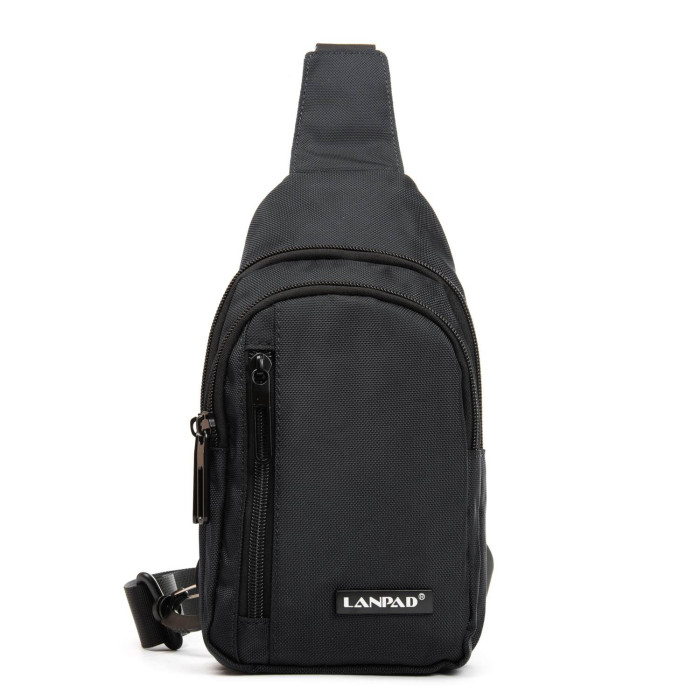 Чоловіча сумка на плече Lanpad. Виготовлена зі щільного нейлону. Два відділення, закриваються на блискавці. Усередині основного відділення є бічна кишеня на блискавці і відкрита кишеня. На фасаді та зворотному боці розташовані кишені на блискавці.
