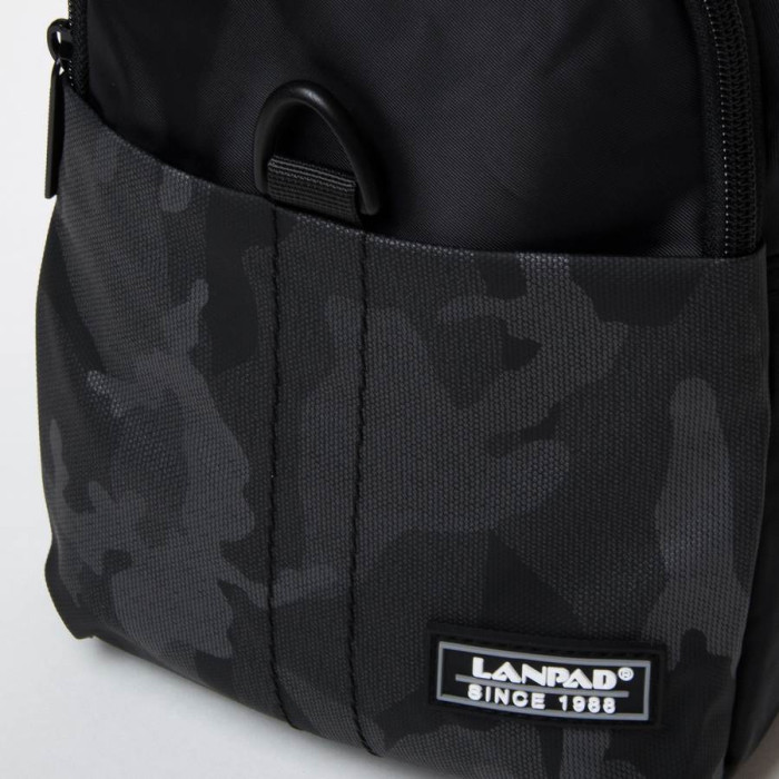 Сумка чоловіча Lanpad. Два відділення, що закриваються на блискавку. Усередині основного відділення є кишеня на блискавці та відкрита кишеня. На фасаді є кишеня на липучці, а на звороті на блискавці. Регульований ремінь, шириною 4см. Можна переставляти на ліву/праву сторону.