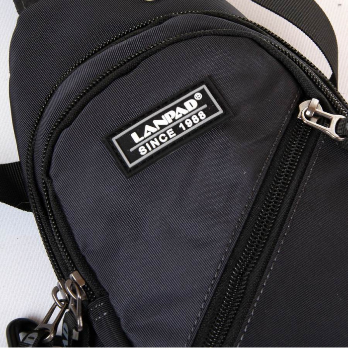 Чоловіча сумка Lanpad. Два відділення, що закриваються на блискавку. Усередині відділення є кишеня на блискавці. На фасаді знаходиться кишеня на блискавці. Регульований плечовий ремінь можна переставляти на ліве/праве плече