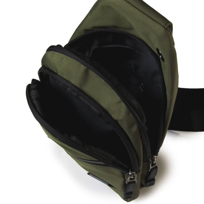 Чоловіча сумка Lanpad. Виготовлена із щільного матеріалу. Два відділення, що закриваються на блискавку. Усередині одного відділення є відкрита кишеня. На фасаді та на звороті знаходяться кишені на блискавці. Регульований ремінь шириною 4см. можна переставляти на ліву/праву сторону.